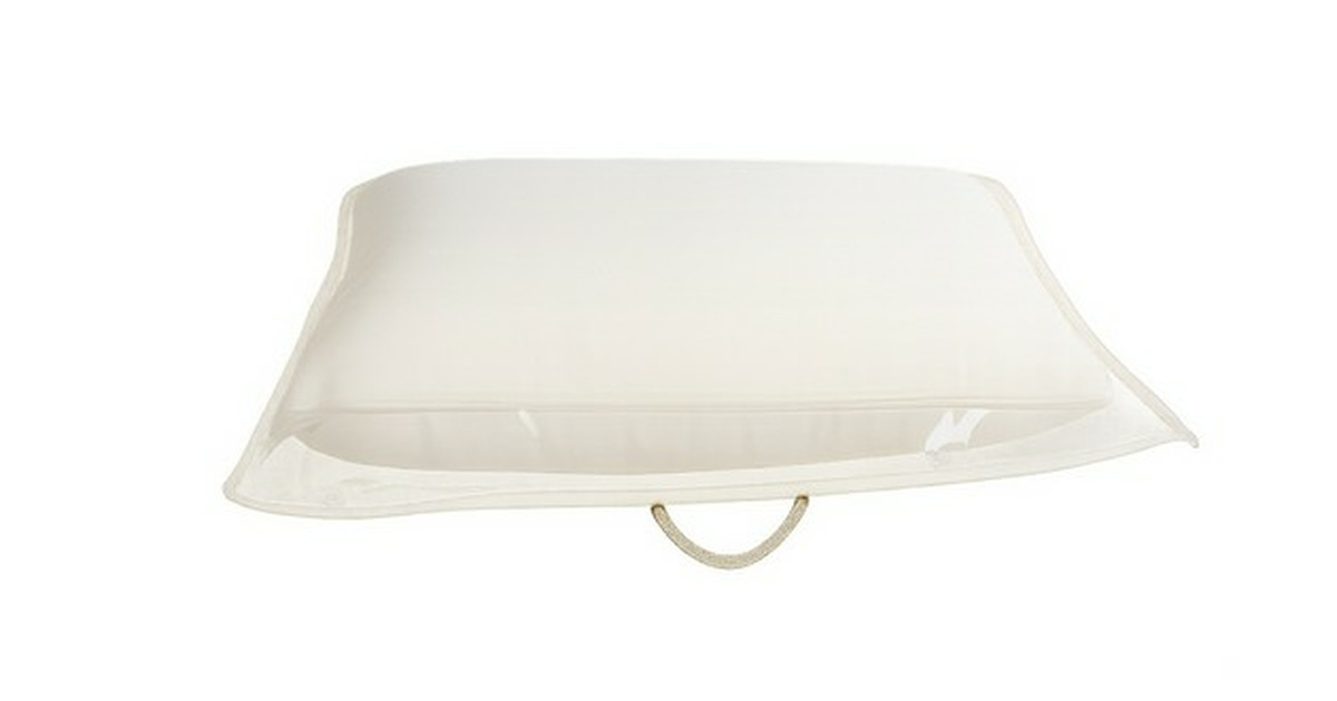 Pratica e funzionale, la borsa è dotata di un manico in corda presente sul lato lungo e la chiusura lampo sul lato corto, che consentono di trasportare e conservare in tutta sicurezza i cuscini di dimensioni 80X50 cm.