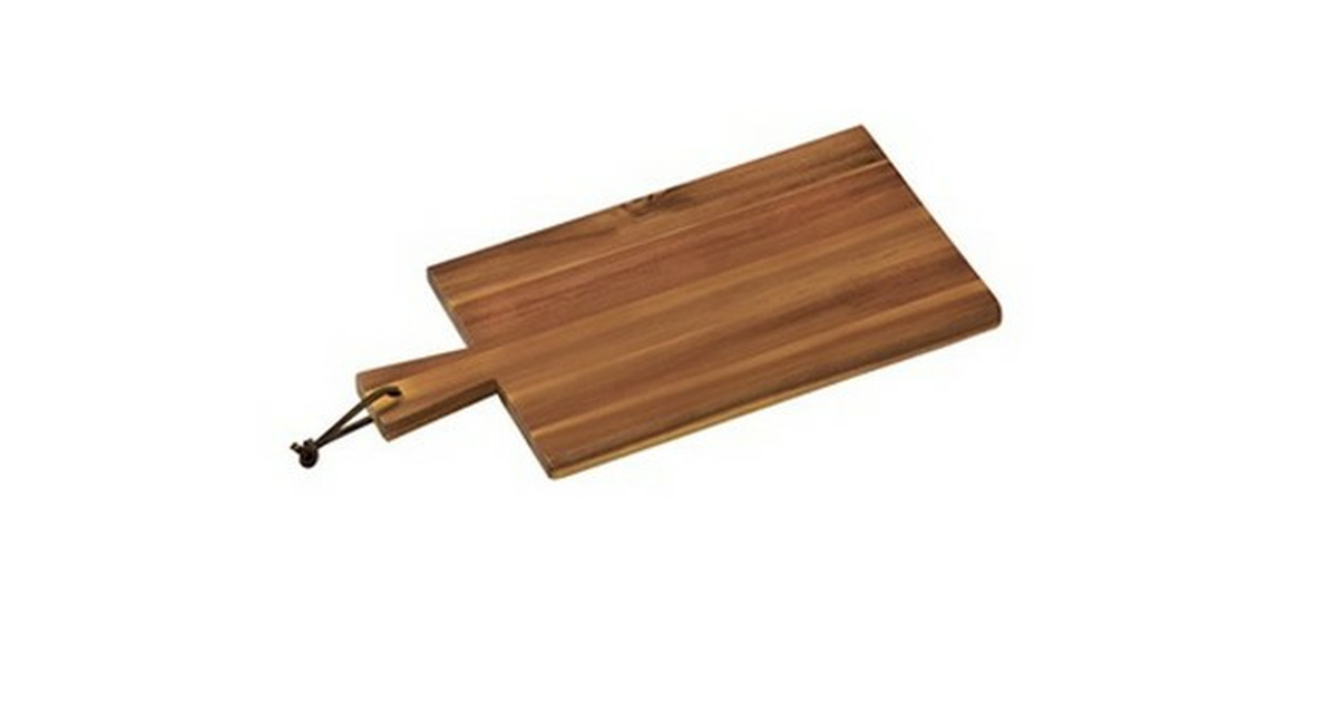 Tagliere in legno di acacia con manico, dimensioni 29x14x1,5 cm (LxPxH).