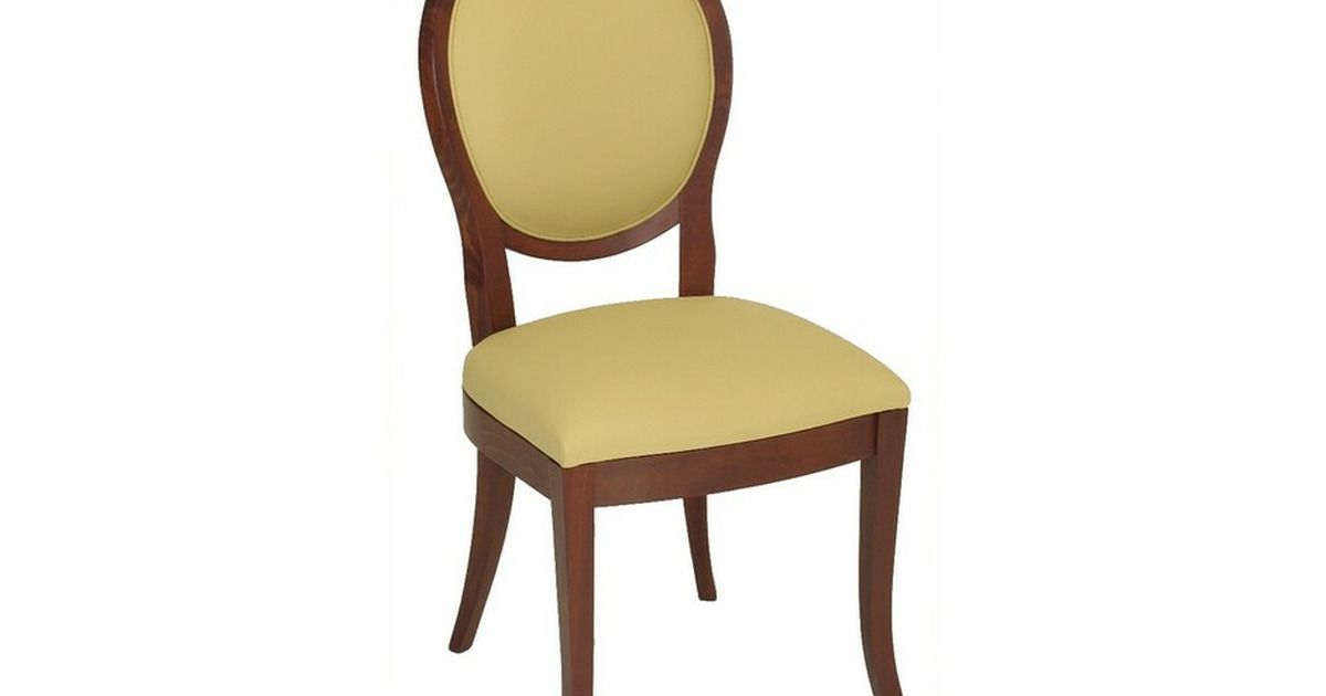 Sedia in legno di faggio, con sedile e schienale imbottiti.